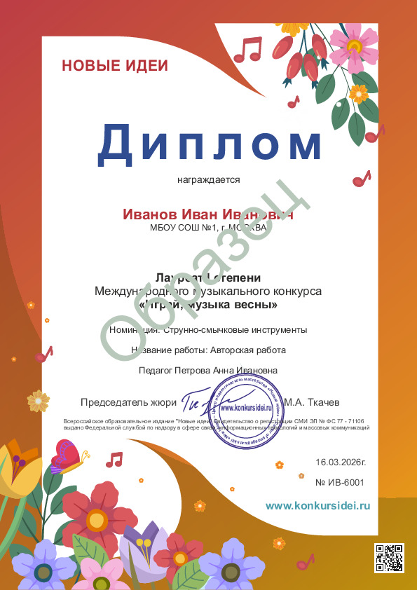 Конкурсант, принявший участие в конкурсе в составе коллектива, может оформить именной диплом (взнос за оформление диплома составляет 200 рублей).