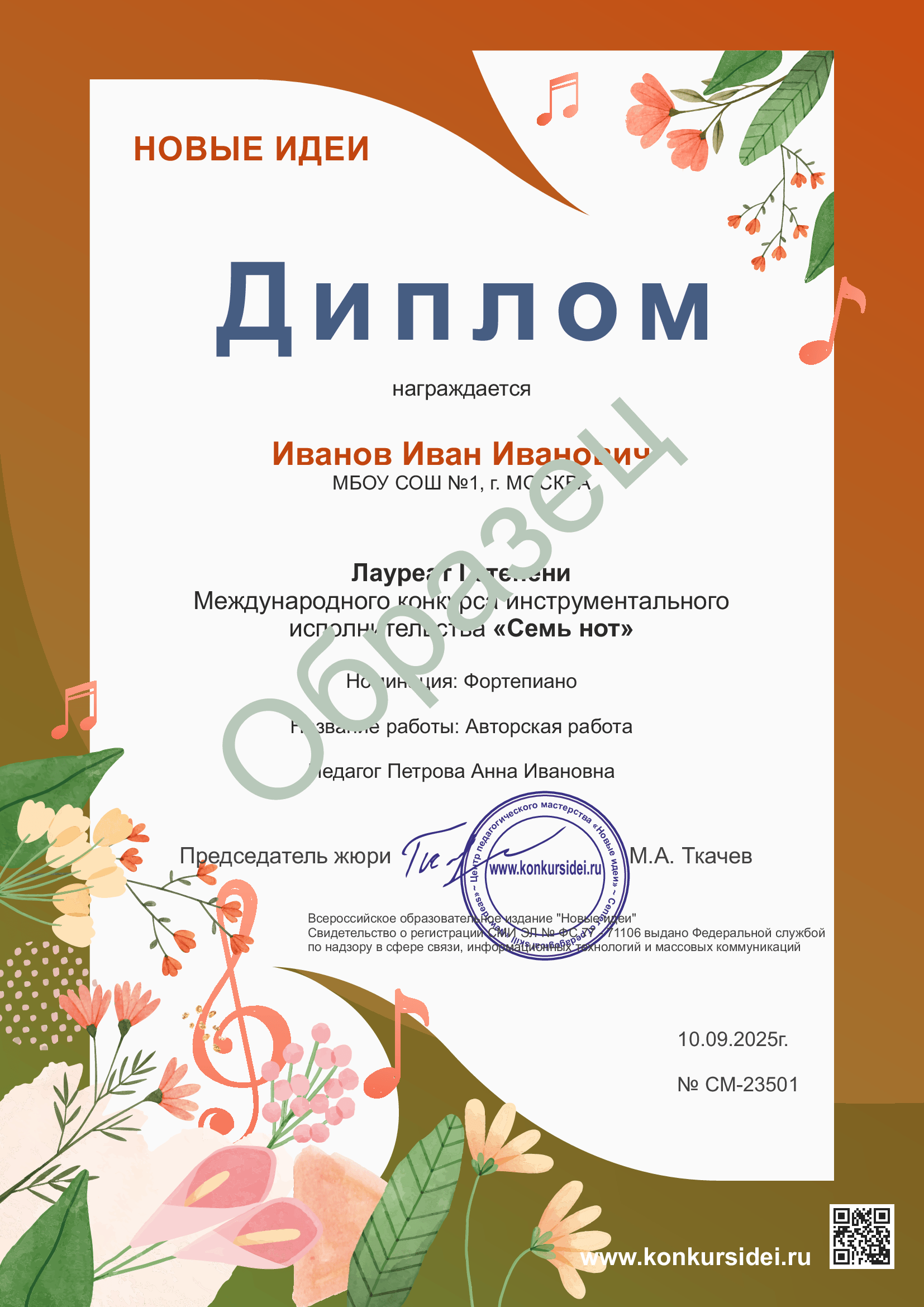 Конкурсант, принявший участие в конкурсе в составе коллектива, может оформить именной диплом (взнос за оформление диплома составляет 180 рублей).