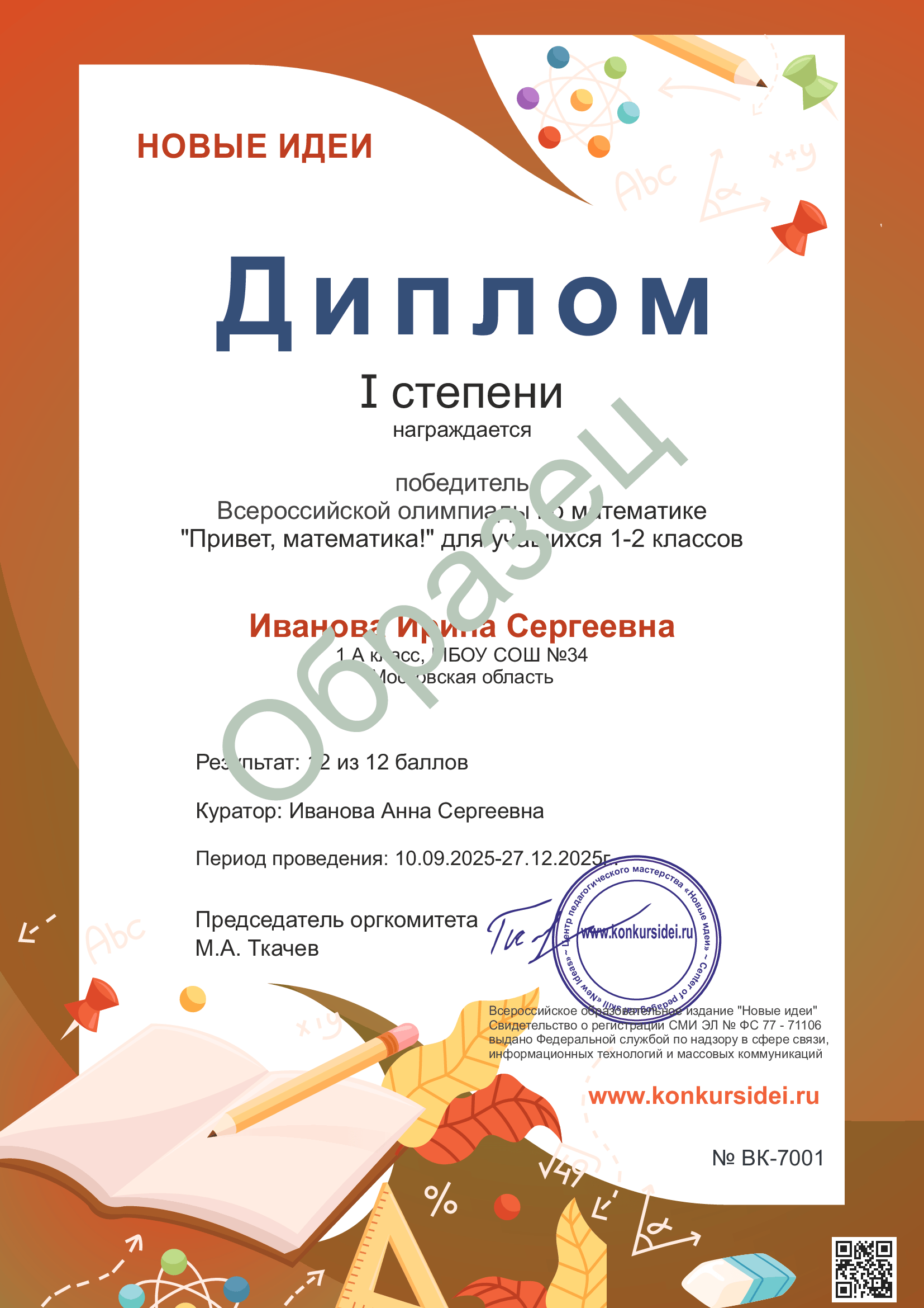 Всероссийская олимпиада по математике "Привет, математика!" для учащихся 1-2 классов |