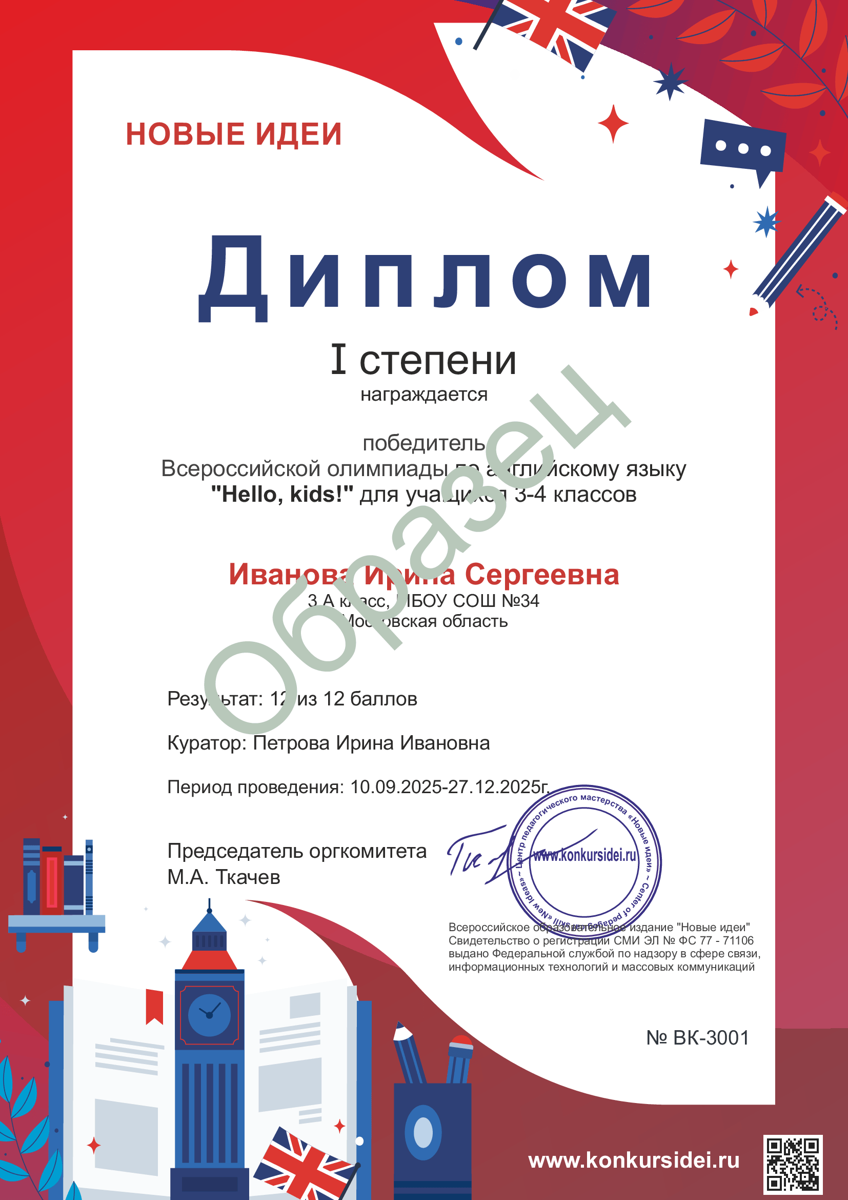 Всероссийская олимпиада по английскому языку "Hello, kids!" для учащихся 3-4 классов |