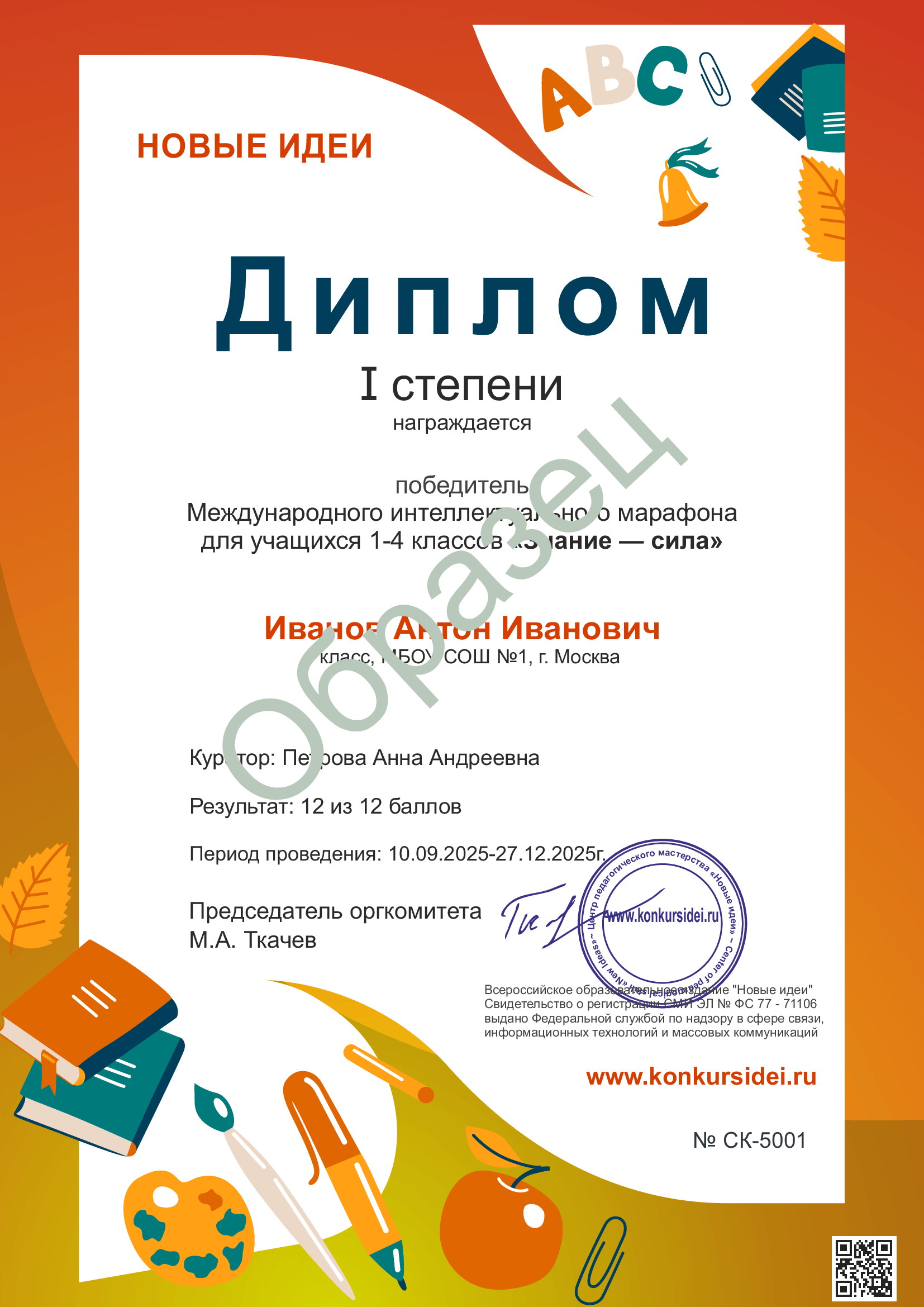 Международный интеллектуальный марафон для учащихся 1-4 классов «Знание — сила» |