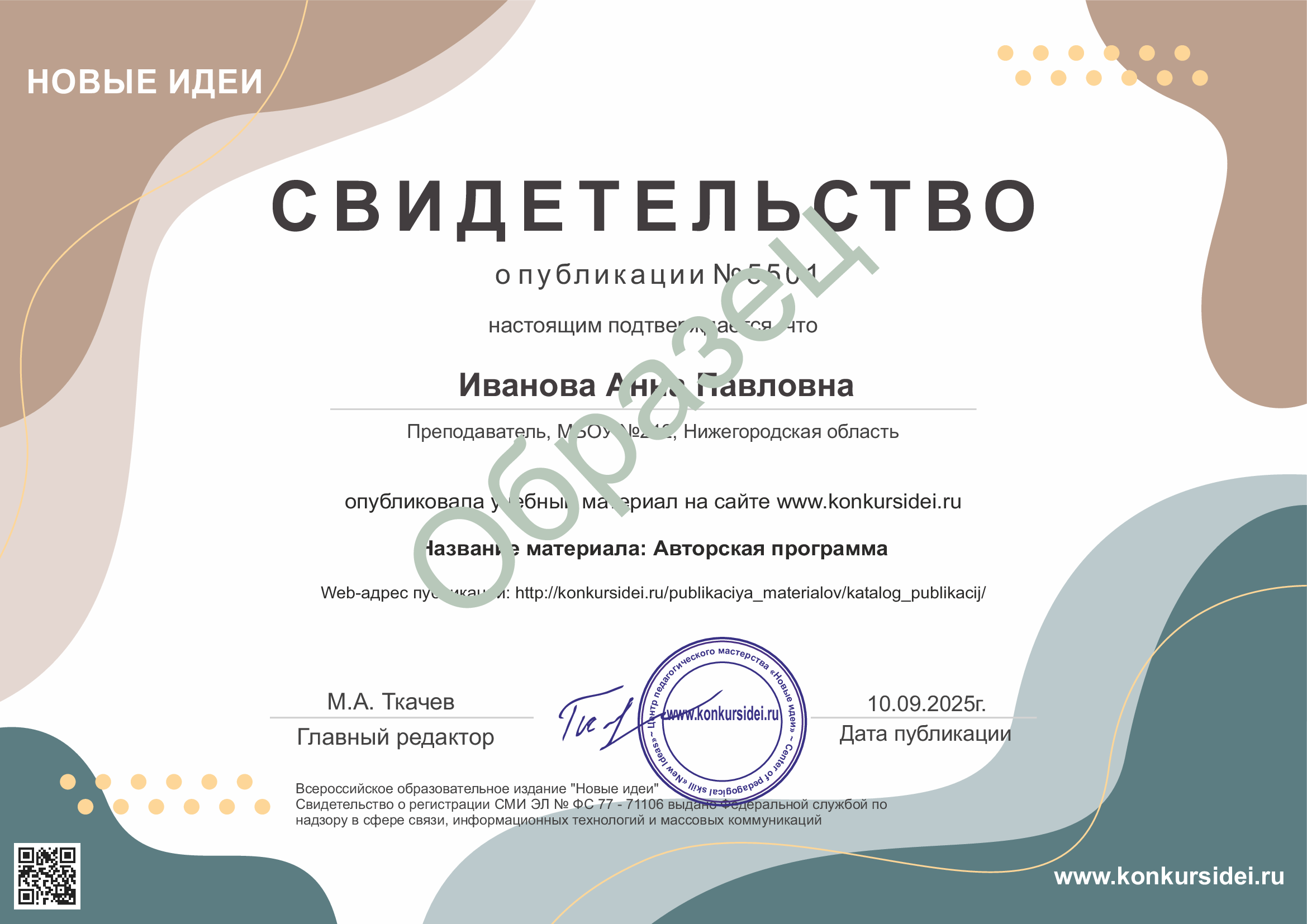 Свидетельство о публикации предоставляется в электронном виде бесплатно.